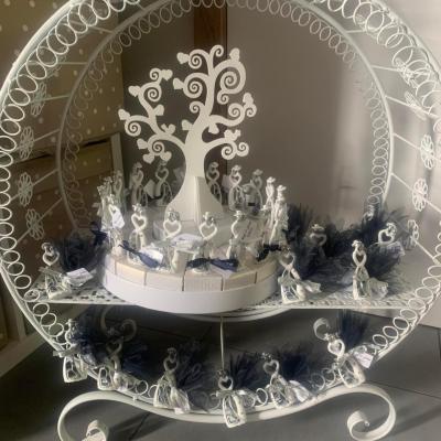 Pourriez-vous me dire le prix pour une cinquantaine de bonbonnière, avec étiquette et présentoir. Avec un thème blanc et doré s'il vous plaît.